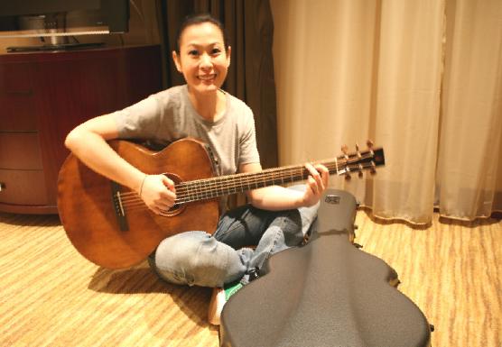 拿到這把專屬吉他,奶茶從演出結束后就急著奔回飯店,才剛拆了頭飾就迫不及待抱著吉他猛彈,直到盡興才肯梳妝赴慶功宴場地。隔天從成都搭機返臺,更在機場上演“打包兒子秀”,小心翼翼地叮嚀同事買了4個機場專用袋、8條尼龍繩,一層層把吉他的頭部、腰部和臀部通通緊緊包住,儼然像托運“兒子”一樣寶貝。沒想到一番苦心還是出了狀況,當她到了臺灣才發現所有行李沒回來,她急忙尋找“吉他兒子”,好在沒漏掉,她一臉慶幸說:“行李掉了沒差,但這把吉他是寶貝,絕不能有任何閃失!”