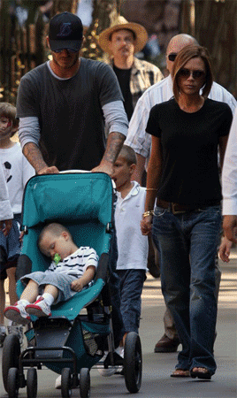 中新網(wǎng)6月13日電 據(jù)英國(guó)《每日郵報(bào)》報(bào)道,美國(guó)當(dāng)?shù)貢r(shí)間星期三下午,貝克漢姆和維多利亞帶著三個(gè)兒子,大游迪士尼樂園。現(xiàn)場(chǎng)所見,他們的大兒子布魯克林與二兒子羅密歐已漸有明星架勢(shì),小兒子克魯茲則獨(dú)享寶寶車,睡得十分香甜。