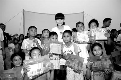 范冰冰低調赴災區 為小學生們送上學習用品(圖)