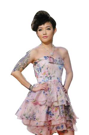 ★陶子:超低胸的造型,不得不用一朵超大的裝飾花來(lái)遮遮掩掩,讓人看著都提心吊膽。