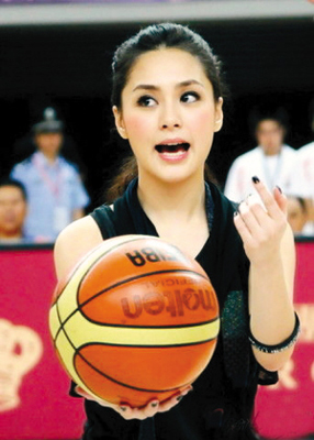 前晚7時,阿嬌出現(xiàn)在籃球場館。她一身黑色背心上衣,配以牛仔短褲和長靴,束起頭發(fā),顯得精神奕奕。可能是休息了大半年養(yǎng)尊處優(yōu),阿嬌明顯發(fā)胖了,清瘦的臉變得圓嘟嘟。許久沒有出現(xiàn)在鏡頭前的阿嬌一開始顯得有點(diǎn)緊張,不過招牌式甜美笑容掩蓋了“怯場”。
