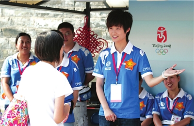 短短一個小時內,李宇春接待了多名游客,除了解答交通問題,她還給游人們介紹當天的奧運賽事信息。一位老人推著三輪車經過咨詢臺時,李宇春和同伴快步上前幫老人推車。李宇春說:“剛上崗的時候還是很緊張的,生怕自己做不好,不過顧慮很快就打消了。因為我有什么不明白的地方,身邊的志愿者都會幫我解答。”另外,歌手譚晶昨天出現在鳥巢8號安檢口旁的志愿者服務站。她與其他幾名志愿者一起,為游客提供咨詢服務。