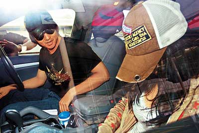 由于徐若瑄趕上機,馮德倫也大力踩油直駛機場,至機場的客區(qū)時,女助手先下車前往柜位辦理手續(xù),此時記者趨前拍照,徐若瑄嚇得馬上低頭以帽遮面及狂打電話,同樣戴cap帽、戴墨鏡的馮德倫表情尷尬,勉強擠出一絲笑容,他見徐若瑄身子不停下滑,穿的小背心領(lǐng)口松開,惟恐她走光即示意整理衣服,她即馬上拉緊外套。