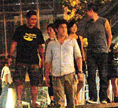 昨日凌晨約12時半,記者發現劉建浩與兩男兩女現身酒吧,其中一名短發女子身穿吊帶背心配黑色貼身褲,打扮時髦,她全程坐在劉建浩對面,另外兩名男子則坐在劉建浩旁邊,一行人先后要了三瓶白酒,邊飲邊剝花生,F場所見,劉建浩的酒量不錯,不時舉杯暢飲,還幾乎杯杯清。其間記者又發現劉建浩拿出手機把玩和發短訊,并展示給朋友看,心情似乎非常high。