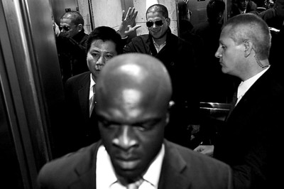 “他們中的兩位以前是英國王室的保鏢。”一個負責人這樣告訴記者,另外的兩位,一位曾在匈牙利特種部隊服役八年,還有一個的身份則有些神秘。米勒的貼身保鏢人數不算多,但是專業程度非常高。“他們的價格是每小時100美金。”雖然負責人表示這是個“友情價”,但是就這樣來算,光一天的“保護費”也需要上萬元人民幣。這還不算酒店以及活動場地的外圍安保。