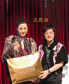 李嘉欣接受主辦方贈品。(來源:香港《文匯報》)
