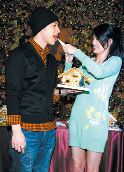 自認運動細胞過人的潘瑋柏,手卻不靈活,14日與師妹江語晨連手作姜餅屋,弄得滿手奶油,還伸舌舔奶油偷吃,她嫌他臟,忍不住說:“師兄,我幫你擠!”他語帶曖昧說:“擠哪?”帶黃腔的對話引爆現場歡笑,無奈江語晨反應慢半拍,發現被吃豆腐后才脹紅臉說:“擠奶油啦!”