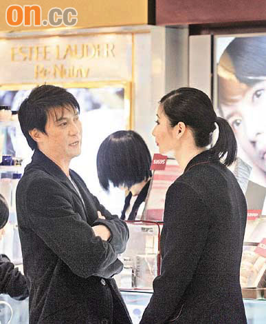 劉錫明到貼有周慧敏海報的化妝品專柜掃貨。