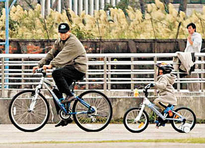 記者上前跟他們打招呼,曾馨瑩即使挺大肚子也動作敏捷地彈開,留下郭臺銘“一夫當關”邊騎單車邊應付記者,問他曾馨瑩肚內孩子的性別,郭臺銘說:“太太比較喜歡女孩子,我自己男女都喜歡,不過我不想破壞大自然法則,性別暫時不說。”