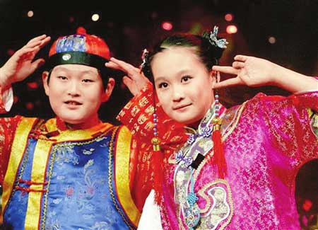 由沈陽籍歌手火風(fēng)、汪正正領(lǐng)銜演唱的開場歌舞《大拜年》,以火爆熱鬧掀開了遼視春晚的蓋頭,節(jié)目中一對(duì)童聲演唱的表演者正是趙本山的一對(duì)龍鳳胎寶貝牛牛和妞妞。屬牛的牛牛和妞妞今年恰逢第一個(gè)本命年,這次表演對(duì)他們來說也是兄妹倆首次聯(lián)手的舞臺(tái)處女秀,因此兩個(gè)小家伙煞是認(rèn)真,無論是彩排還是正式表演,舉手投足都像模像樣,看起來是深得父親的真?zhèn)鳌?