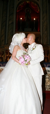 昨天,愛情長(zhǎng)跑10年的張衛(wèi)健與張茜在始建于1571年的菲律賓著名景點(diǎn)圣奧古斯丁大教堂舉行了婚禮。香港驕陽電影公司總裁徐小明為兩人證婚,而作為兩人共同好友的李靜和戴軍則出任大婚司儀。在婚禮上張茜身穿一件拖尾純白裹胸婚紗,上半身有5000顆水晶點(diǎn)綴,造型別具一格。在婚禮中,一對(duì)新人在親友面前熱吻一分鐘,張茜還兩度喜極而泣。