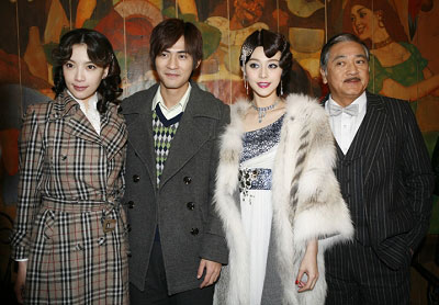 范冰冰擔(dān)任制片人的第二部電視劇《金大班的最后一夜》正在上海熱拍,劇組昨日在楊浦區(qū)的一棟洋房內(nèi)組織媒體探班,范冰冰偕男主角周渝民、方中信、黃少祺、秦沛等以劇中造型出現(xiàn)在媒體面前。在采訪中,老板兼演員的范冰冰以及首次出演年代戲的仔仔周渝民成為媒體關(guān)注的焦點(diǎn),兩人表現(xiàn)出“相見恨晚”的樣子,難怪仔仔最后被問到是否會(huì)與大S復(fù)和的消息,仔仔很肯定地說:“沒有”。