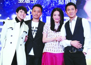 何韻詩、張涵予、舒淇、劉德華(從左到右)將在大年初一上演一場“游龍戲鳳”的好戲。記者 郭延冰 攝