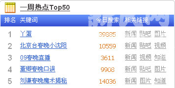 春晚凸顯廣告效應 "丫蛋"搜索過萬成最熱門詞條