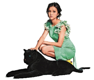 謝安琪新唱片《吶喊》暫定下周四推出。日前她拍攝以動物做題材的唱片封套,除了戴上牛角帽,還跟一只用鐵制成的黑豹合影。
