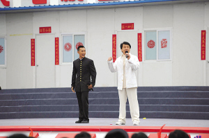 昨日早上8點半,“心連心”演出主會場的演出在綿竹最大的救災(zāi)板房安置區(qū)舉行。據(jù)悉,所有的演員昨天5點鐘起床化妝,再從德陽駐地趕到演出現(xiàn)場。而他們當中的成龍前晚半夜12點才趕到四川;正在香港進修CEO的趙本山更是專門趕回來。即使半夜到德陽,也要專門趕到綿竹現(xiàn)場彩排。前天下午,在“心連心”位于綿竹市二號立交橋板房區(qū)的主會場,里里外外圍滿了前來觀看的鄉(xiāng)親。在板房搭建起來的簡易舞臺上,演員們正在彩排。開場曲是央視24位主持人與4位歌手合唱的《三百六十五個祝福》。