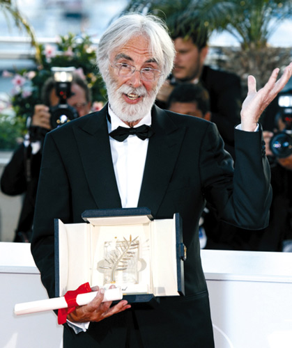 這個爭議也是扔給于佩爾的。當“金棕櫚”得主哈內克上臺領獎,于佩爾跟他作了長達10秒鐘的深情擁抱時,人們無法不想起在2001年,正是哈內克執導的《鋼琴教師》讓于佩爾二度奪得戛納影后的桂冠。《白絲帶》能戰勝口碑更好的《預言者》,于佩爾在當中有沒有起“作用”?于佩爾的表情很坦然:“哈內克得獎,是因為他對人類靈魂的挖掘是如此深刻!”
