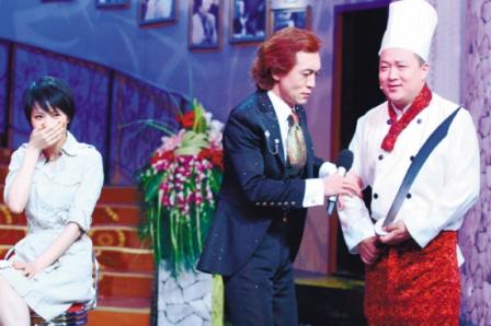 亮相后的高圓圓,身著一身淺色連衣裙。專門守在樓梯口迎接的大勺,此時(shí)臉上笑開了花,盡管他只是搭把手,把高圓圓的手傳遞到李詠手上,并眼睜睜地看著高圓圓與李詠禮節(jié)性的擁抱,但大勺依然是一副非常知足的樣子。因?yàn)樗呀?jīng)計(jì)劃好了一切,就在嘉賓高圓圓一落座的瞬間,大勺一屁股搶先坐在李詠椅子上,親切地問高圓圓想吃什么菜,愛吃什么菜,完全不把“老板”李詠放在眼里。