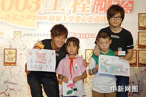 中新網(wǎng)9月3日電(蒲波) 3日下午,2009年中央人民廣播電臺(tái)MusicRadio音樂(lè)之聲“我要上學(xué)——愛(ài)的5003工程”大型主題公益活動(dòng)在北京798藝術(shù)區(qū)圣之藝術(shù)中心舉行記者會(huì),音樂(lè)之聲“愛(ài)心大使”何潤(rùn)東牽手河北省豐寧滿族自治縣鄧柵子小學(xué)的小東楠姑娘亮相。