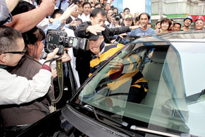 記者連線在現(xiàn)場的上海某媒體記者小純得知,從9月30日趙本山突然住院以來,昨日首次露面。因此,當(dāng)他出現(xiàn)在媒體面前時,引來歡呼。