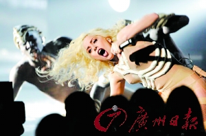 舞臺上,雖然她并不是提名最多的歌手,但有她在的舞臺永遠都是最有看點的。比如說Lady Gaga 表演白骨纏身,乳色衣服制造“裸體”假象。除此之外,久未露面的拉丁天后詹妮弗·洛佩茲也登臺獻唱。