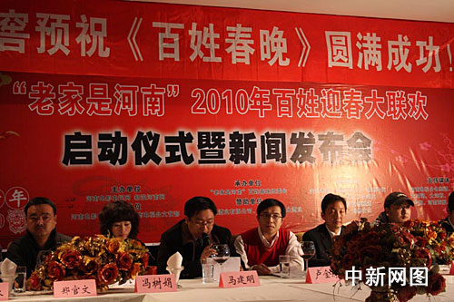 中新網鄭州12月17日電 (記者 晏立海) 12月17日上午,“老家是河南”2010年百姓迎春大聯歡啟動儀式在鄭州市舉行。這個去年在全國被炒得的沸沸揚揚的“中原山寨春晚”班底,今年又注入了新的“血液”,當地一家知名電視臺介入,讓這個純“草根文化”的“民間春晚”,出現了官方的身影,“草根春晚”被“招安”。
