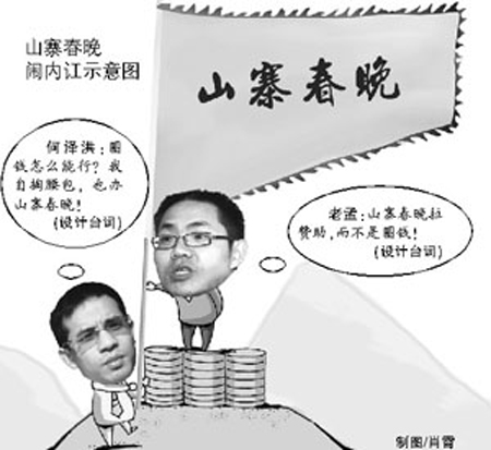 “老孟最愛的就是炒作。”何澤洪說,老孟不斷給媒體放假消息,是為了讓“山寨春晚”引起更多人關注,讓贊助商對其充滿信心。
