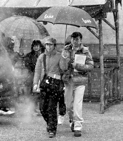 電視劇《延安愛情》悄然在沈開機,男主角鄧超昨天首現關東影視城片場。得知消息后,本報記者冒著棋盤山四月飛雪前往探班,親眼見證“熒屏情侶”來沈拍攝的第一場戲