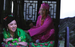 人物不多,場面簡單,怎么辦?全靠臺(tái)詞和“趙家班”。雖然張藝謀和制片人張偉平口口聲聲稱影片改編自好萊塢影片《血迷宮》,不過影院經(jīng)理們都覺得更像一部“實(shí)景版二人轉(zhuǎn)”。浙江時(shí)代院線的錢總說,他覺得這部影片完全取材于“二人轉(zhuǎn)”,是為小沈陽量身打造的,小沈陽的表現(xiàn)也同他在舞臺(tái)上的表演類似,至于閆妮,基本上還是《武林外傳》中的那個(gè)老板娘。