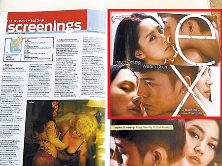 中新網(wǎng)5月14日電 阿嬌(鐘欣桐)因前年受艷照事件影響,事業(yè)掉落谷底,她近來以電影《前度》復(fù)出影壇,又獻(xiàn)銀幕初吻又和男主角陳偉霆泡鴛鴦浴,力搏翻身。電影公司強(qiáng)打她的電影情欲照,昨天,戛納影展的每日特刊《VARIETY》以及《The Daily》都出現(xiàn)宣傳海報。