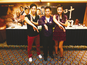 《葉問前傳》將于本月25日登陸重慶銀幕。昨日,該片制片人冼國林、主演杜宇航、陳嘉桓來渝為該片宣傳造勢,作為葉問嫡傳徒孫的冼國林不僅現場耍起了重5斤的大刀,還順手將雜志卷起當武器,讓大家近距離見識了詠春拳的威力。