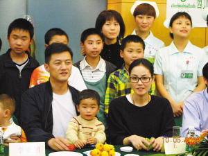 現場的李亞鵬時時處處都表現得像個慈祥的父親,不斷地詢問著康復兒童的情況,由于考慮到患者家庭很困難,他還表示,“無論如何,我們基金是不會收家屬制作的錦旗的,希望你們也不要去亂花錢!辈灰\旗,從災區來的10歲小女孩王麗卻從衣兜里掏出兩個手工做的蘋果,活蹦亂跳地送到李亞鵬夫妻面前,感動得二人連忙起身接收。看到恩人收下禮物,王麗很高興,現場唱起了《一千零一個愿望》,眼淚都唱出來了。據悉,王麗曾在地震中受到了嚴重的腦外傷,雖然經過醫治,但現在還有一只耳朵失聰。