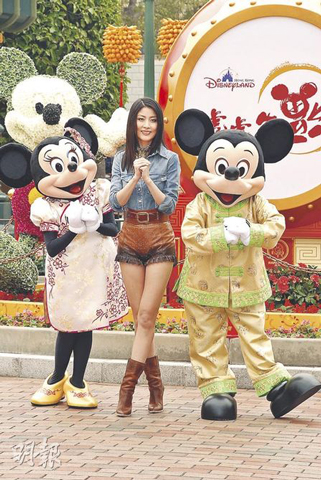 中新網(wǎng)2月5日電 陳慧琳 (Kelly)被香港迪斯尼樂園封為“幸福天后”,昨日Kelly現(xiàn)身迪斯尼樂園,與米奇一同介紹2月5日至28日特別推出的“虎虎生!毙麓汗(jié)目,迪斯尼更把Kelly的新歌《幸福的快車》和她為香港迪斯尼設計一系列鉆飾手袋名為“陳慧琳KxM系列”,在迪斯尼擺賣。