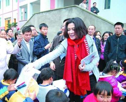 中新網4月13日電 4月10日,香港影星關之琳、香港影星呂良偉夫人楊小娟來到貴州赤水,為赤水市關山希望小學揭牌。