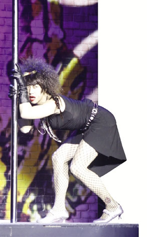 鄧超扮演的兩個角色都個性十足,一個是自負女子九兒,一個是喜歡裝酷、滿嘴外語的情圣俞白眉。一個是妖嬈的女子,一個是正宗的男人,穿梭在這兩個跨度極大的角色之間,鄧超游刃有余。開場不久,鄧超扮演的九兒身穿性感的黑裙背對觀眾出場,先是一段“婀娜多姿”的舞蹈,隨后又沿著豎桿從二樓滑向一樓,與房東展開了一場令人意想不到的智力測試。鄧超的舞臺動作有些夸張、不雅,由于是男扮女裝,充滿了搞怪意味,因此大多數觀眾都抱以寬容的大笑。根據問卷調查統計,12名觀眾認為九兒的扮相增加了喜劇效果,占總數60%;6名觀眾表示很不錯,占30%;1名觀眾認為太夸張,1名觀眾感覺一般。