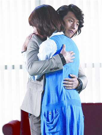 內心戲是考量演員的重要指標。遠遠地,穿著淺藍襯衫加湖藍色針織背心的朱丹慢慢走著。一身西裝,扎著馬尾的張赫跟在她身后,隨后兩人交談了幾句,張赫便從背后一把摟住了朱丹,擁抱親吻。