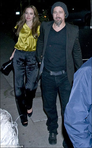 34歲的朱莉身穿黃色絲綢上衣配搭黑色絲綢褲子,臉上一直洋溢著幸福滿足的笑容。而46歲的皮特則身穿深灰色夾克、黑色V領(lǐng)T恤和牛仔褲,兩人堅(jiān)定相牽的手似乎也在回?fù)糁鴤餮浴?