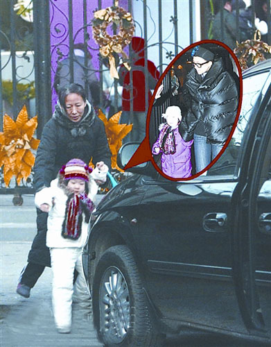 近日,記者來到位于INTEL大廈的章子男居所附近,恰巧趕上章子怡之前使用的那輛黑色道奇駛出大廈,記者便跟了上去。該車最終來到位于望京的某小學門口,而后一中年女子迅速下車,站在門口開始向校園內觀望。沒過多久,一個穿著一襲白衣的小女孩向中年女子跑了過來,該女孩就是章子男的女兒。中年女子未作停留,迅速將女孩領到了車內,隨后一溜煙離開。