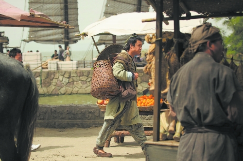 小沈陽(yáng)的第一場(chǎng)重頭戲是他所扮演的小鞋匠在碼頭上巧遇一位白胡子老翁,受其一番指點(diǎn)和教導(dǎo),這位老翁也是江湖一位武俠高手,之后和趙本山所扮演的河盜一起把武功秘籍傳授給小沈陽(yáng)。這場(chǎng)戲選擇在無(wú)錫影視基地的太湖碼頭拍攝,碼頭邊停靠著數(shù)艘巨大的帆船,小沈陽(yáng)進(jìn)入狀態(tài)非常快,這場(chǎng)戲拍攝得也相當(dāng)順利,連在旁觀看的趙本山也忍不住面帶微笑。