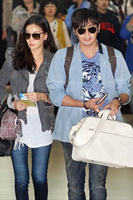 報道稱,3日張東健與高素榮戴上墨鏡,在逾10名保安包圍下辦理出境手續,沿途引來起哄,張東健擔心懷孕的妻子,細心為妻子開路,更揮手感謝粉絲的祝福。