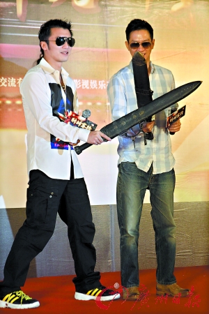 當(dāng)日,謝霆鋒第二次成為爸爸,他承認(rèn)自己現(xiàn)在心情大好,拍喜劇片正適合。二人在現(xiàn)場也擺開架勢比賽拔劍速度,兩人戲中有不少對打戲份,而家輝透露戲里,謝霆鋒武功高強(qiáng),“他的責(zé)任就在打,我的責(zé)任在搞”。張家輝更笑指謝霆鋒:“他生孩子很有本事。”