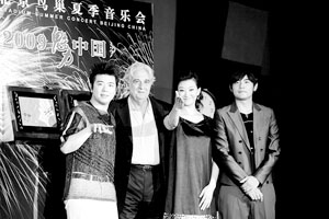 昨天,宋祖英首次和三位重量級嘉賓多明戈、周杰倫、郎朗同時出現在鳥巢,為今晚的音樂會造勢。
