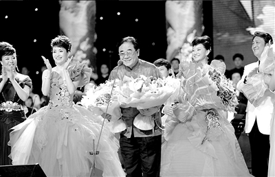 昨晚,金鐵霖的30多位學(xué)生輪流獻唱。呂繼宏的《咱老百姓》、劉斌的《當(dāng)兵的人》、閻維文的《小白楊》、張也的《走進新時代》、董文華的《今天是你的生日,中國》等,都有極高的人氣。吳碧霞演唱的歌劇《康蒂德》選段《紙醉金迷》是演出的一大亮點,除了聲音極富穿透力,吳碧霞在臺上的表演非常出彩,將角色哭與笑、苦與樂的矛盾表現(xiàn)得淋漓盡致。壓軸出場的宋祖英演唱了《茉莉花》和《愛我中華》。記者許青紅