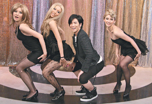 蕭敬騰到了《全民最大黨》更是豁出去,被小野貓上身大秀M字腿,但是一見九孔模仿的“假楊謹華”又是強抱、又想壓床,他還是嚇得立刻彈開。蕭敬騰有狂野歌聲,但肢體動作不太協調,跳Super Junior的《SORRY, SORRY》時,一直踩到自己的腳。
