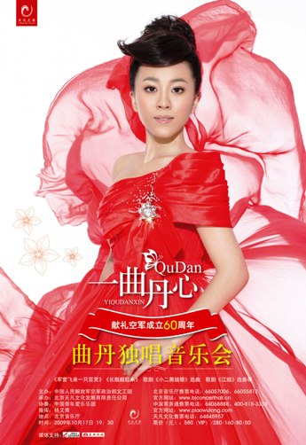 據悉,“一曲丹心”曲丹個人音樂會將為慶?哲姵闪⒘苣甓_慶典序幕,作為慶祝中國人民解放軍空軍成立六十周年系列活動之一,這次音樂會籌辦歷時半年之久,歌手曲丹為此而做了精心的準備。