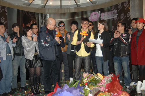 作為黃勇這張全新專輯的監制,同時也是黃勇老板兼大哥的齊秦因為臨時有事沒能來到發布會現場,但通過VCR送上了他特別的祝福。齊秦對黃勇音樂給予了極大的肯定和祝福。黃勇的好友龐龍、尹相杰、熊天平等也通過VCR送上了祝福。北京圣天驕影視文化藝術有限公司老總李繼宏也送上了一份精心準備的寓意深刻的禮物——金話筒,希望黃勇把他的歌聲通過這只金話筒帶給全世界所有喜歡他音樂的朋友。(李學仕)