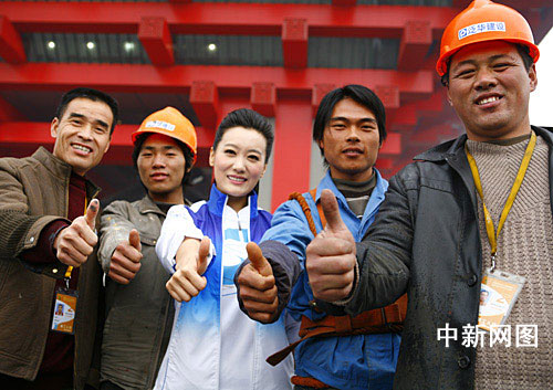 中新網1月20日電 20日上午11點,譚晶專程來到世博會中國館工地。這次她是為世博會志愿者歌曲《世界》的MV前來取景。