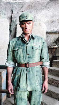 在電影版《紅日》中,著名演員楊在葆演繹的解放軍連長石東根形象深入人心。這是一個用戰(zhàn)刀挑著敵人的鋼盔,縱馬揚鞭自在豪情的“不怕死”的鐵漢英雄。這一經典角色對青年演員的要求頗高,既要塑造人物扎實質樸,又要有市場號召力。最終,從眾多一線小生中,耿樂脫穎而出,與李幼斌、尤勇組成中青年《紅日》“夢幻組合”。該劇尚未拍攝,播出權就被各大電視臺一搶而空。