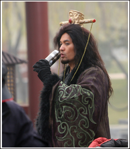 與上部《鳳鳴岐山》相比,《武王伐紂》最大的調(diào)整是由林心如取代范冰冰扮演“紅顏禍水”蘇妲己,而昏庸無(wú)道的商紂王也由馬景濤變成了呂良偉。昨天當(dāng)記者趕到片場(chǎng)時(shí),劇組正在布景,預(yù)備拍攝一場(chǎng)雨天妲己為紂王撫琴,二人展現(xiàn)恩愛(ài)的戲。雖然在劇中扮演一對(duì)親密愛(ài)侶,但拍攝之外,林心如和呂良偉卻各干各的事情,二人坐得非常遠(yuǎn),很少交流。林心如坐在亭子內(nèi)撫琴,身穿一件粉色的輕紗古裝,高挽著發(fā)髻,雖然化著精致的妝容,但總體給人的感覺(jué)卻是端莊有余而妖嬈不足。由于天寒地凍,呂良偉在黑色戲裝之外套了一件紅色的羽絨服,雖然還沒(méi)有正式開(kāi)拍,但他的“煙熏妝”造型還是讓人覺(jué)得有些不舒服。金色的發(fā)冠,凌亂的頭發(fā),再加上滿臉的絡(luò)腮胡和一貫凌厲的眼神,劇組的群眾演員開(kāi)玩笑說(shuō)呂良偉的造型簡(jiǎn)直酷似“人猿泰山”。