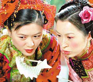 《李小環與苗翠花》里的兩位女主角田海蓉、郭藹明是一對師出同門、并肩走江湖的“奪命花環”的姐妹花;“文弱書生”方德也變成了拳腳了得的方天橫,功夫甚至比李小環與苗翠花更勝一籌,讓兩姐妹情不自禁地拜倒在他的魅力之下。“再好的姐妹只要喜歡上同一個男人,肯定都會翻臉,我和李小環在戲中整天為了方德吵架甚至大打出手,每次都搞得衣冠不整的。”郭靄明說起和田海蓉的合作,臉上露出嬌柔的微笑:“雖然戲里我們是情敵,但是拍起來可是非常有默契,每次演的時候,不用導演多解釋,我們彼此一個眼神就夠了。而戲外,我們簡直就是連體嬰兒,好得‘難舍難分’,海蓉特別照顧我,比如我的頭飾歪了,她就會細心地幫我弄好,所以拍這部戲最大的收獲就是讓我結識了一個好姐妹。”(記者 陳羽中)